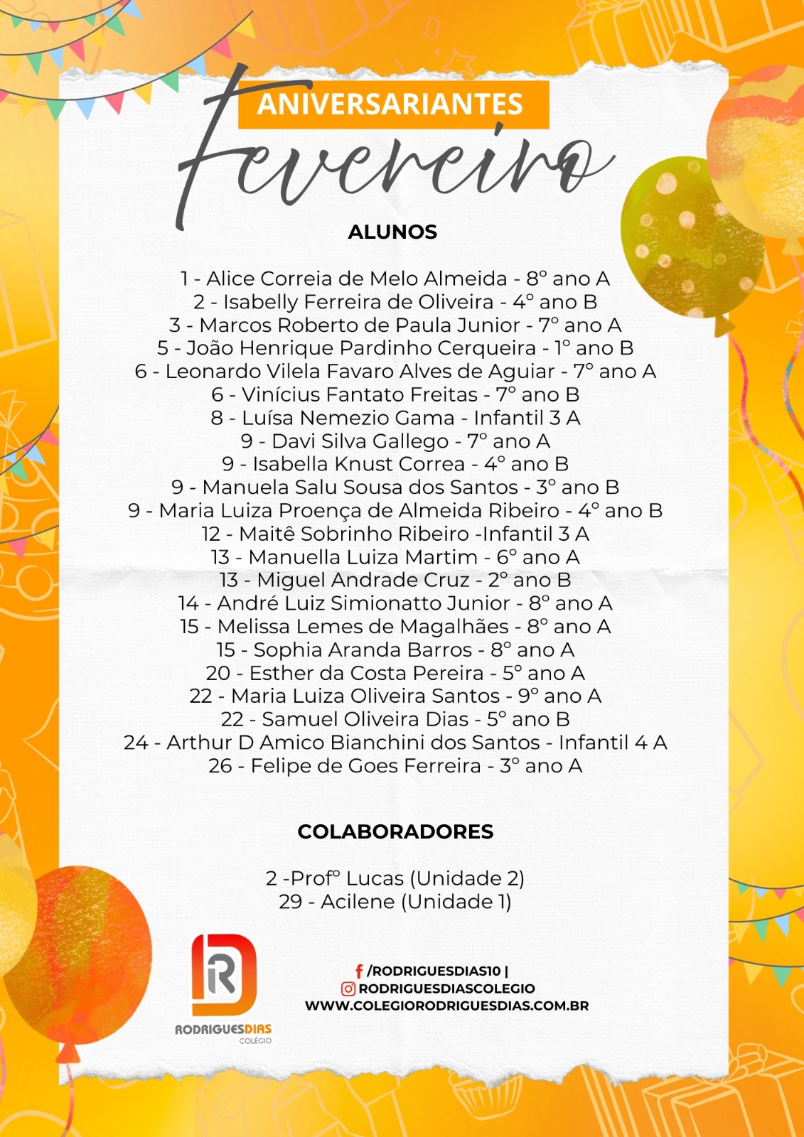 Aniversariantes do Mês
