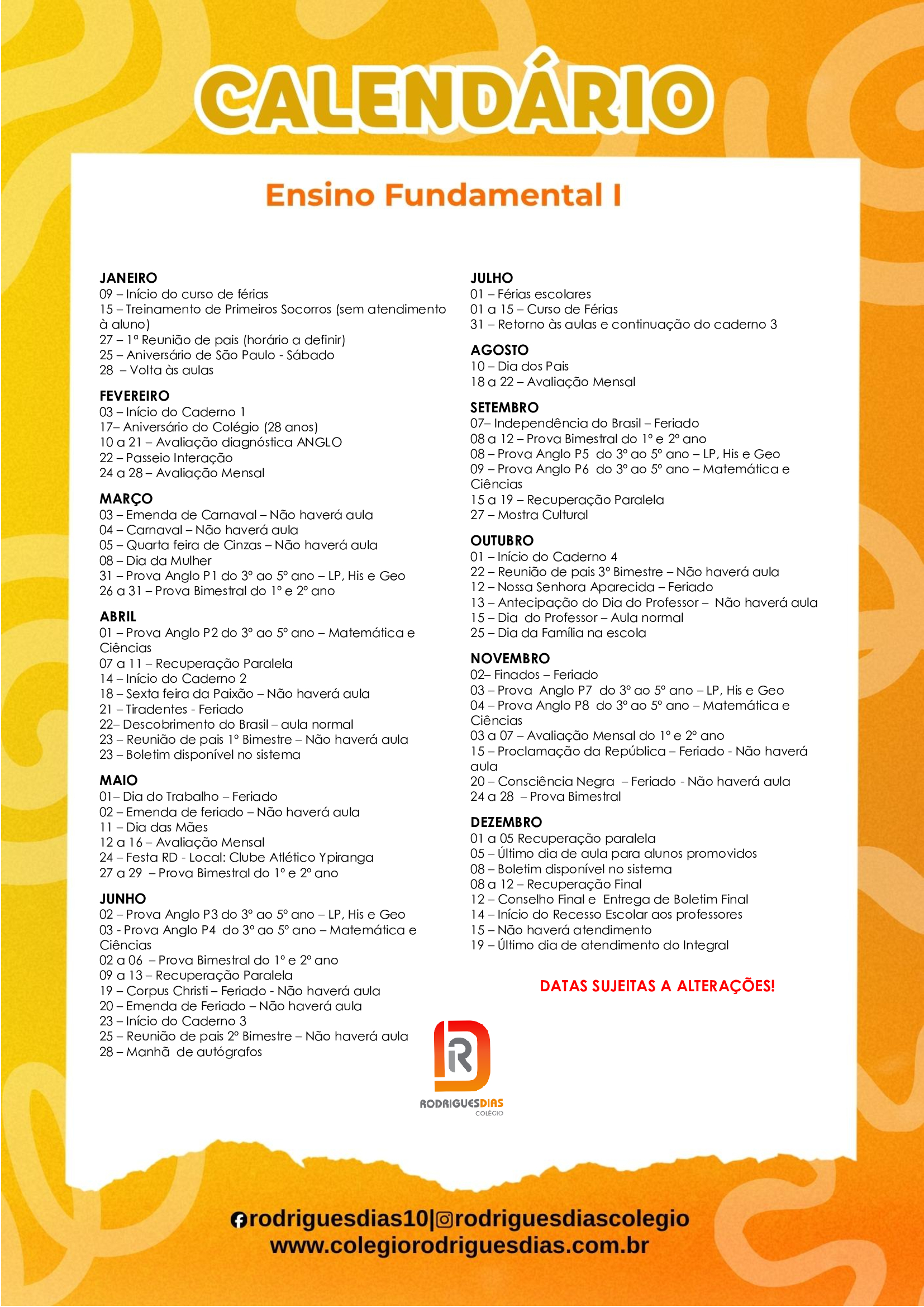 Calendário Ensino Fundamental I